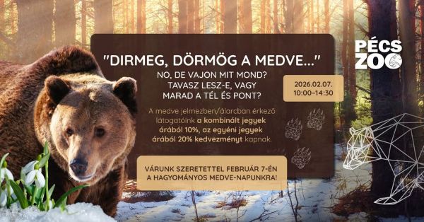10:00-14:00 (Állatkert területén) Mackó-ösvény - barangold be az állatkertet, old meg a feladványokat és ha minden választ megleltél, add le a megoldásokat az Oktatóteremben, hogy részt vehess a sorsoláson, ahol egy értékes, izgalmas nyereményt sorsolunk ki.