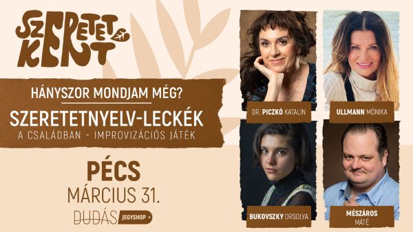 Az este folyamán Dr. Piczkó Katalin (pszichiáter, tréner, coach, a Szeretetkert könyvek szerzője) és színészek segítségével játékos formában tanulhatunk saját magunkról, a párunkról és a kapcsolatról.