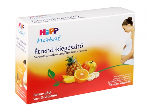 A Hipp Natal a várandós és szoptató kismamák számára készült, vitaminokat, ásványi anyagokat és nyomelemeket tartalmazó, magas gyümölcstartalmú étrend-kiegészítő szirup. Hozzájárul a várandósság és a szoptatás alatt megnövekedett vitamin-, ásványianyag- és nyomelem-szükséglet fedezéséhez. A 3x200 ml-es kiszerelésben kapható termék 30 napra elegendő, naponta 20 ml fogyasztása javasolt. Pl a drogériákban is kapható. Magas gyümölcstartalom (93,8%) -Kellemes ízű -Gluténmentes -Laktózmentes -Tartósítószert nem tartalmaz -Mesterséges színező- és ízesítő anyagot nem tartalmaz 3x200 ml: 4.200Ft |