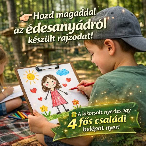 Nincs más dolgod, csak alkotni egy szívből jövő rajzot, május 03-án ellátogatni kalandparkunkba, belépőjegy váltást követően leadni rajzodat és elérhetőségedet, végül együtt izgulni a nyereményért !