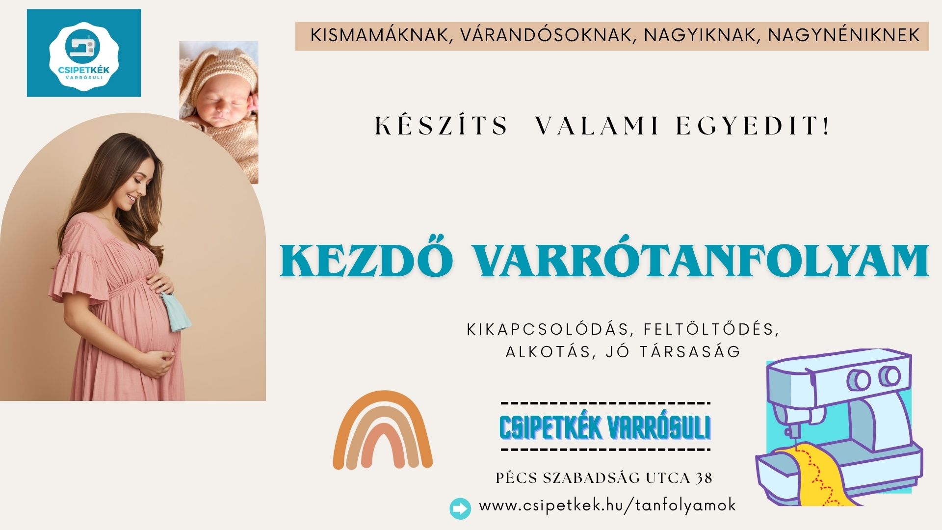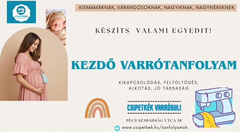 Bővebb infó, regisztráció: https://csipetkek.hu/varrotanfolyamok/