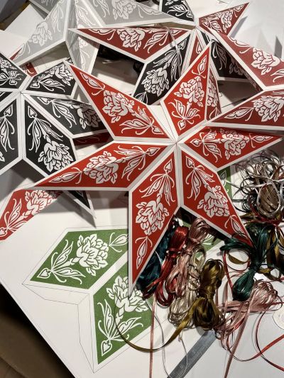 A program ára: 3000 forint / csillag. A csillag mintája kézi szitázással készül saját műhelyünkben, átmérője 45 cm.