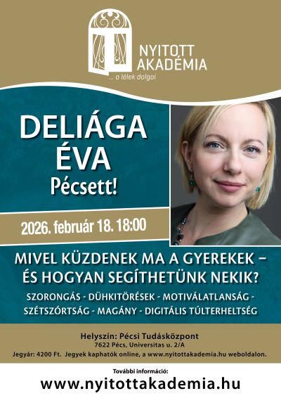 A tavaszi szezon első Nyitott Akadémia előadása Pécsen: Mivel küzdenek ma a gyerekek - és hogyan segíthetünk nekik? Szorongás - dühkitörések - motiválatlanság - szétszórtság - magány - digitális túlterheltség
