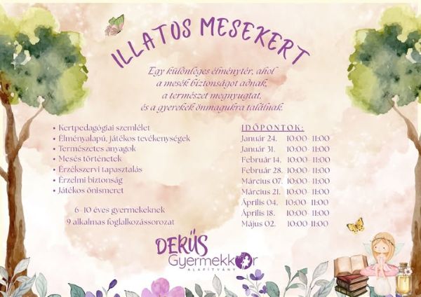 Az Illatos Mesekert egy különleges, nyugodt élménytér, ahol a mesék biztonságot adnak, a természet megnyugtat, és a gyerekek saját ritmusukban kapcsolódhatnak önmagukhoz.