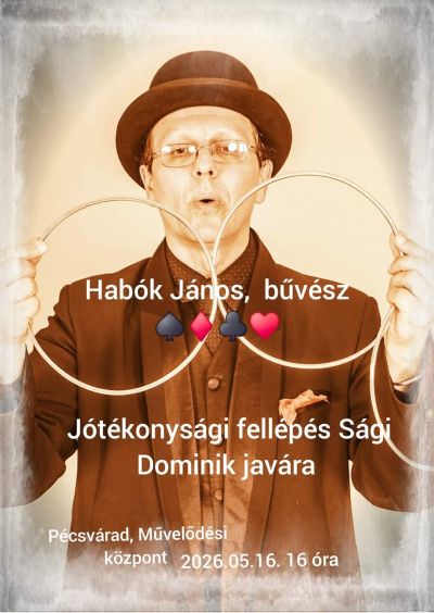 Időpont: 2026. Május 16. (szombat) 16:00 Helyszín: Pécsváradi Művelődési Központ, Pécsvárad, Kossuth Lajos utca 31. Jótékonysági fellépés Sági Dominik javára.