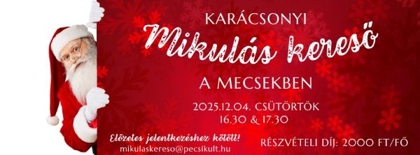 Előzetes jelentkezés szükséges: mikulaskereso@pecsikult.hu