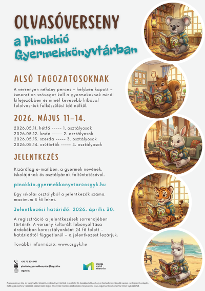 Kizárólag e-mailben, a gyermek nevének, iskolájának és osztályának feltüntetésével a pinokkio.gyermekkonyvtar@csgyk.hu email címen lehet.