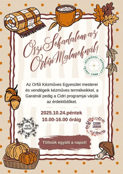 A Orfűi Malmok , Cidri! esemény részleteiről, oldalukon olvashattok.