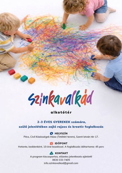 Célom, hogy a gyermekekkel minden héten más és más eszközt ismertessek meg: krétával, festékkel, színes papírokkal és gyurmával játszunk a hónap minden keddjén. Hiszem, hogy elvárások nélkül, saját felfedezésben érdemes megláttatni, hogy a rajzolás egy olyan elfoglaltság, amin keresztül sok mindenben fejlődik a gyermek. Mindezt sablonok megadása nélkül, önfeledt firkálással, játékos együtt rajzolással érhetjük el.