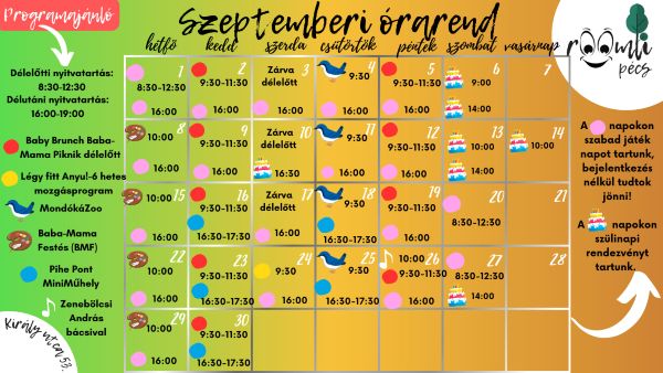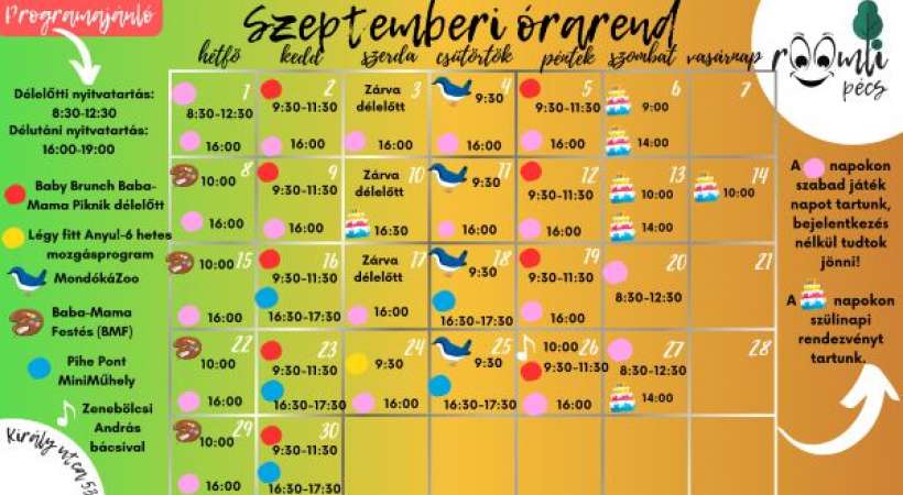 Minden csütörtökön délelőtt 9:30-tól, jelentkezés a roomlipecs@gmail.com címen.