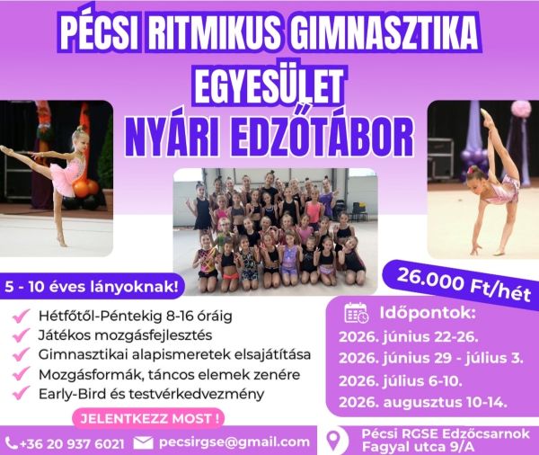 A Pécsi Ritmikus Gimnasztika Egyesület Nyári edzőtábora 2026